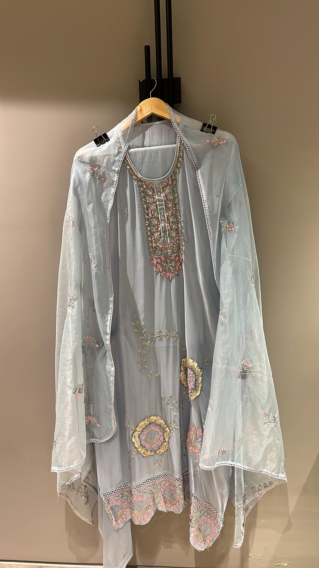 Powder Blue Soft Organza Semi‑Stitched Suit