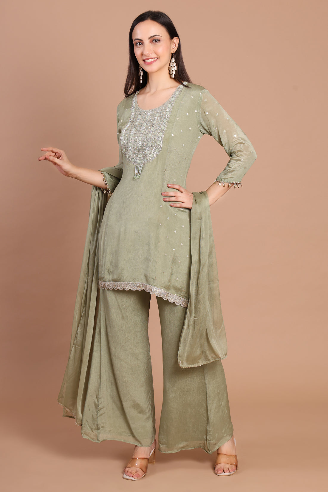 Sea Green Pure Chinnon Ready-to-Wear 3-Piece Formal Suit