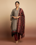 Elevate your ethnic wardrobe with this Beige, Black & Maroon Maheshwari Silk Unstitched Suit, a beautiful blend of traditional charm and timeless elegance. The printed Maheshwari silk shirt features a striking maroon and black border, adding depth and character to the ensemble.