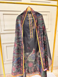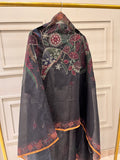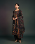 Black Pure Chanderi Unstitched Suit with Kantha Work