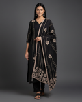 Redefine classic elegance with this semi-stitched pure crepe suit in timeless black. The smooth, luxurious fabric drapes beautifully, while the printed black dupatta adds a touch of sophistication. Paired with a plain black lower, this ensemble is a perfect blend of simplicity and grace — ideal for formal occasions and festive gatherings.