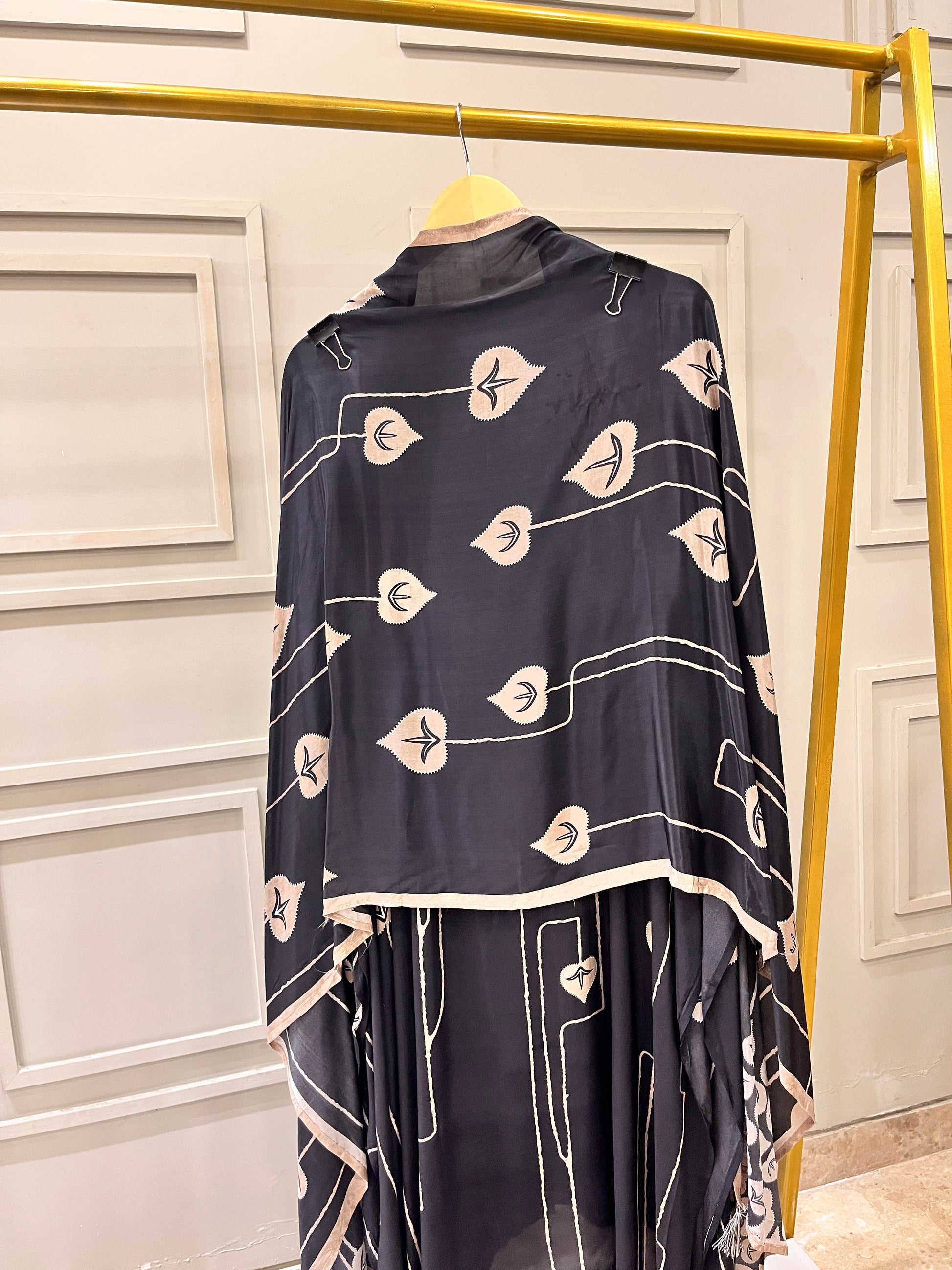 Black Pure Crepe Semi-Stitched Suit with Printed Dupatta