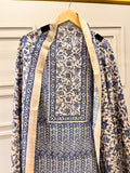 Blue & Fawn Pure Tussar Unstitched Formal Suit