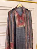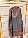 Bluish Grey Pure Crepe Semi-Stitched Suit with Printed Dupatta