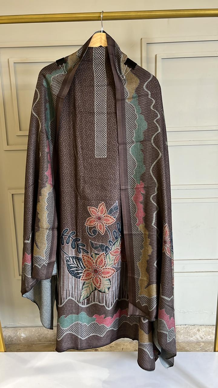 Stay warm and stylish this winter with this elegant brown woolen unstitched suit. The set includes a soft woolen shirt and matching lower in the same rich brown shade, ensuring a coordinated and timeless look. The printed woolen dupatta adds a touch of charm, making it perfect for everyday wear or casual outings in the colder season.