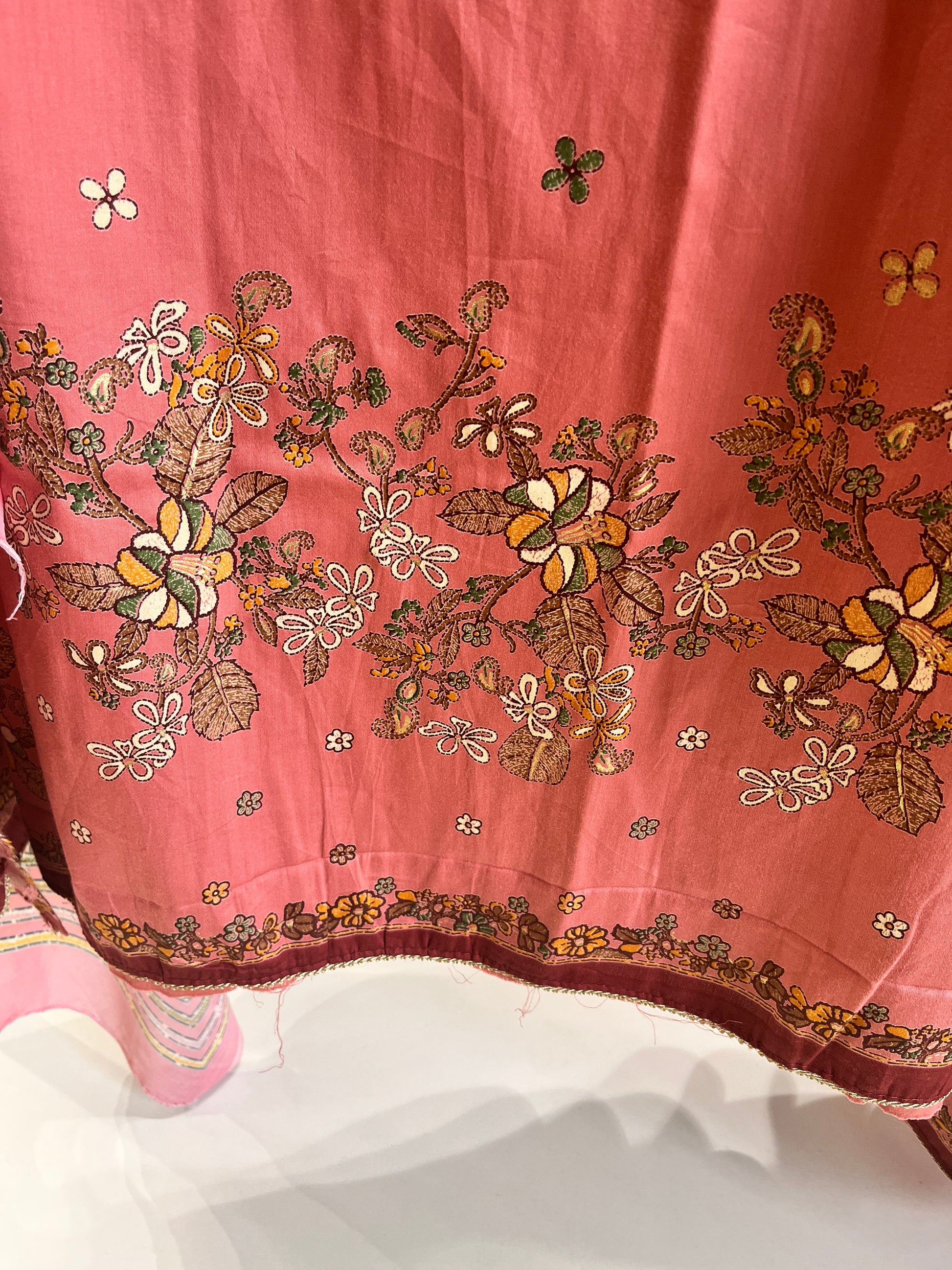 Carrot Pink Pure Cotton Unstitched Suit with Thread Work