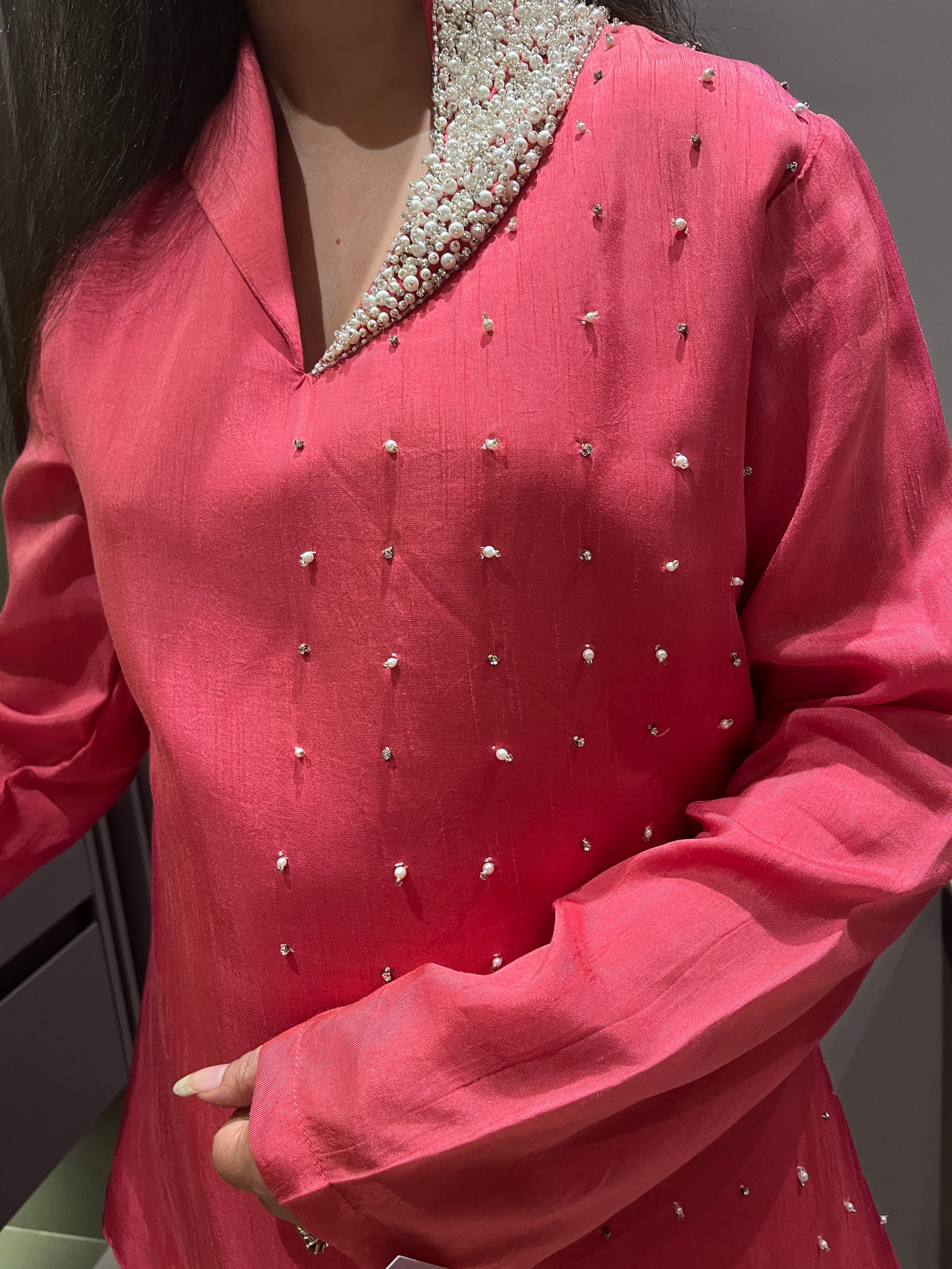 Step into radiant charm with this Carrot Pink Ready-to-Wear Cord Set. The vivid carrot-pink color makes a bold yet elegant statement, while the expertly coordinated top and pants deliver effortless style. Designed for both comfort and impact, this set is perfect for daytime events, brunches, casual soirées, or any occasion where you want to stand out. The blend of structure and vibrant color makes it a versatile addition to any wardrobe.
