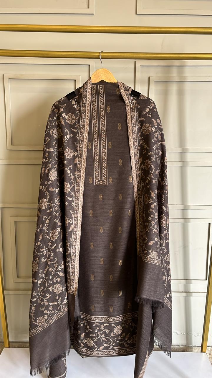 Coffee Colour Pure Pashmina Woollen Unstitched Suit