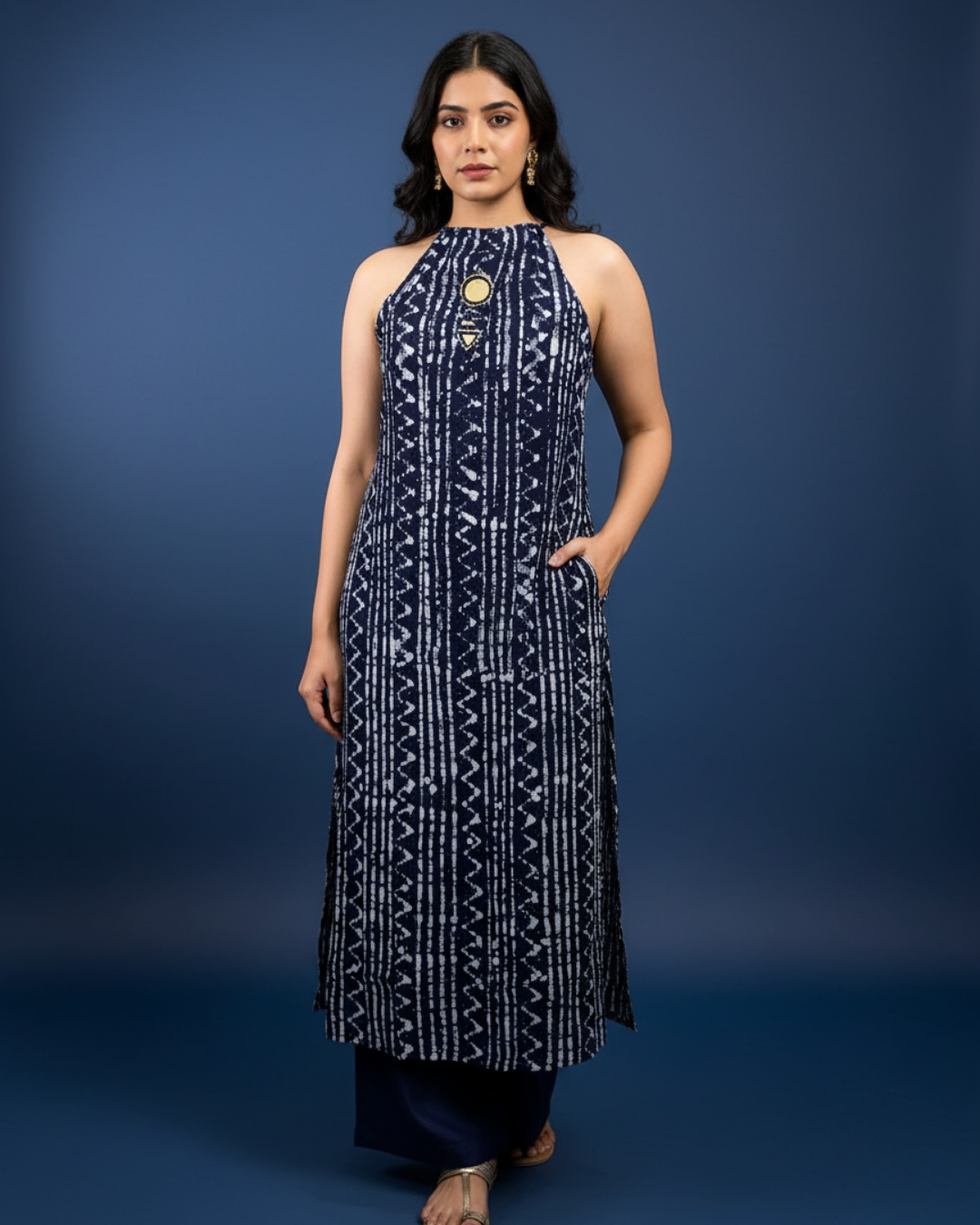 Navy Blue Cotton Stitched Suit – Elegant Everyday Wear