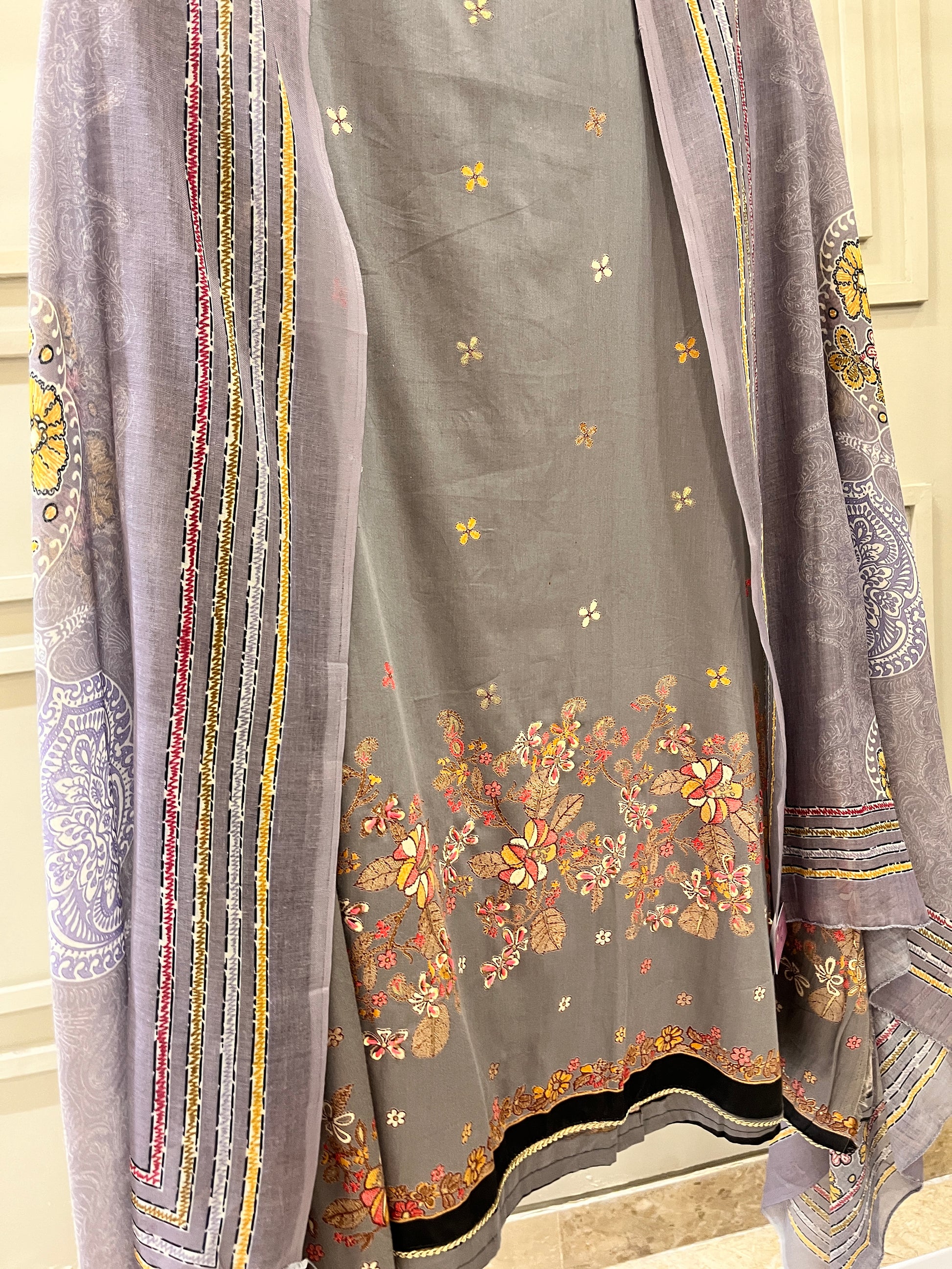 Grey Shade Pure Cotton Unstitched Suit with Thread Work