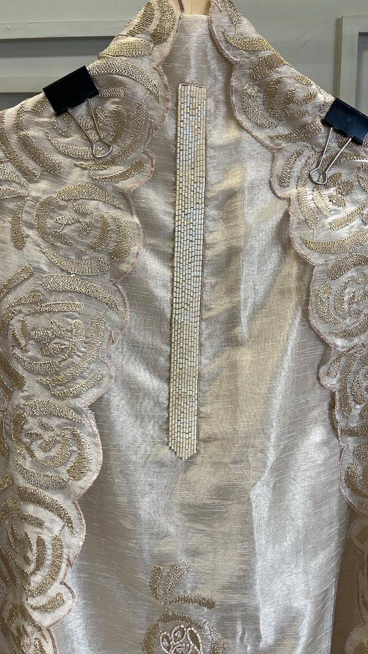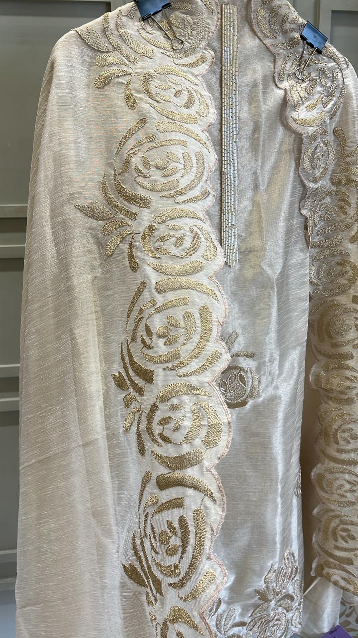 Ivory Pure Tissue Unstitched Suit with Hand Embroidery & Cut Dana Work