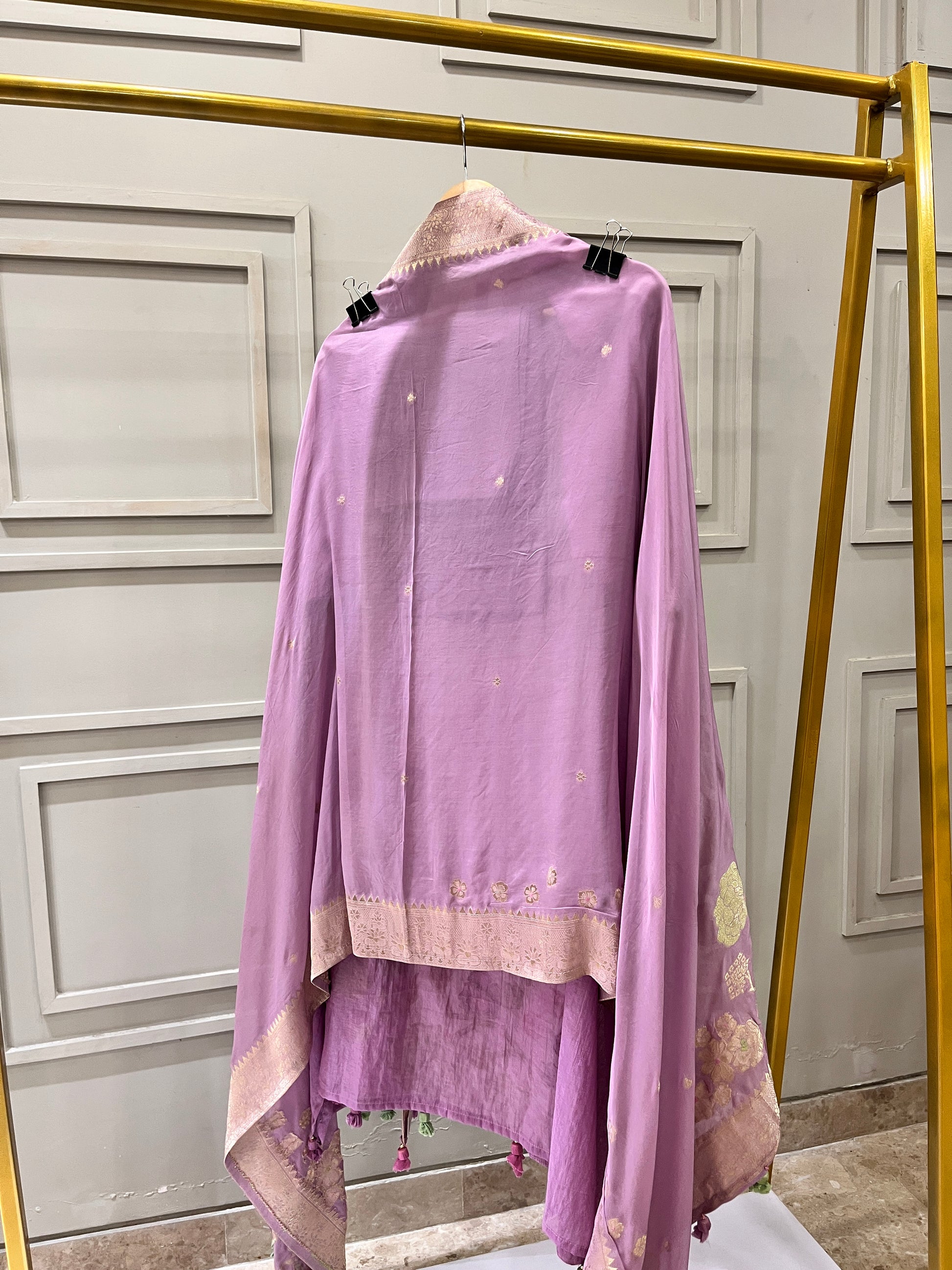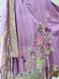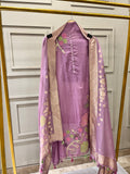 Mauve Pure Mul Unstitched Formal Suit with Banarasi Printed Dupatta