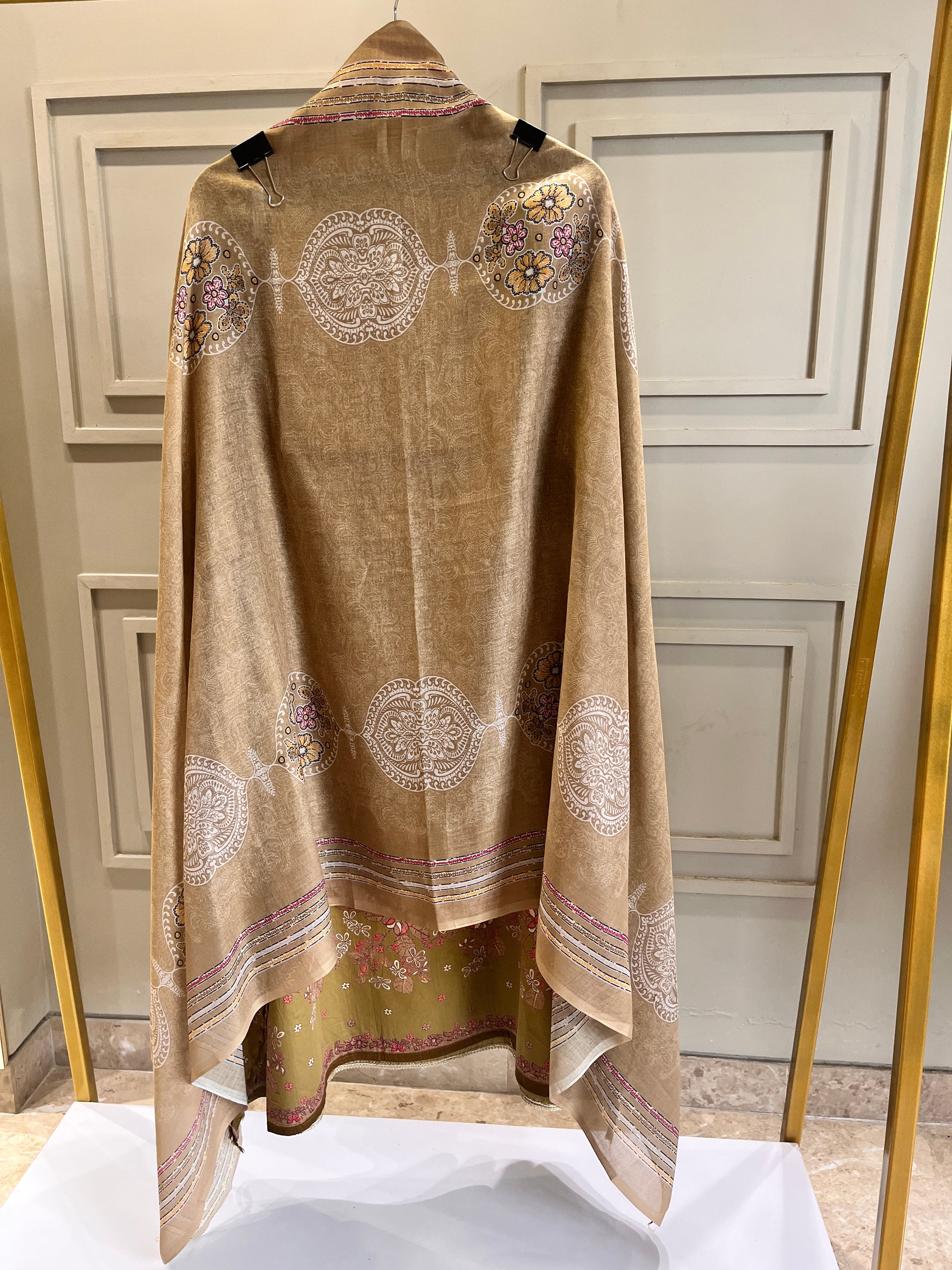 Infuse freshness into your wardrobe with this Mehndi Green unstitched suit, crafted from pure cotton for all-day comfort. The shirt features delicate thread work on the front and back, paired with a plain matching lower and a beautiful printed dupatta that adds a pop of elegance. Perfect for everyday grace or casual gatherings.