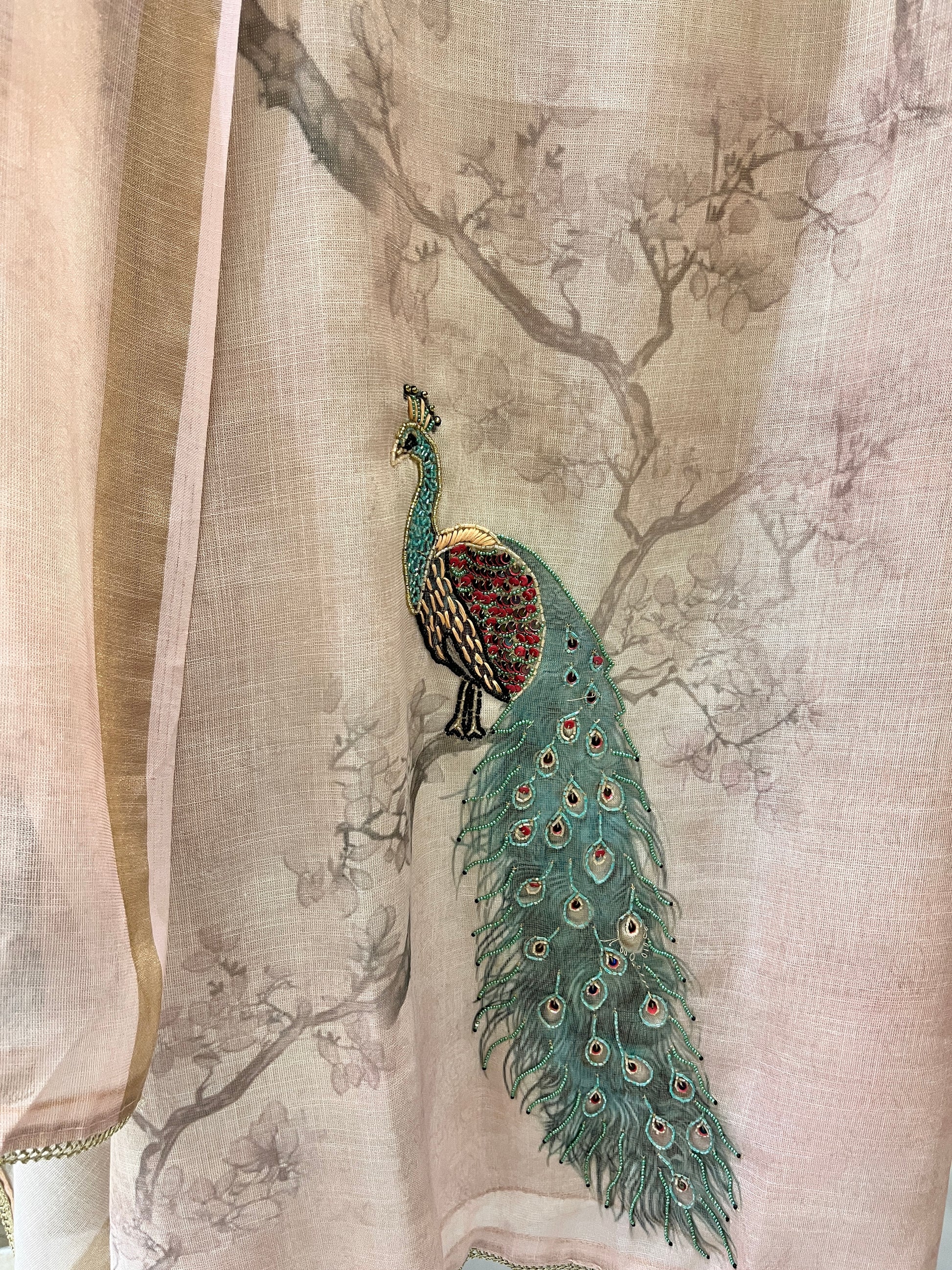 Work: Hand-Embellished Peacock Motif