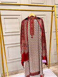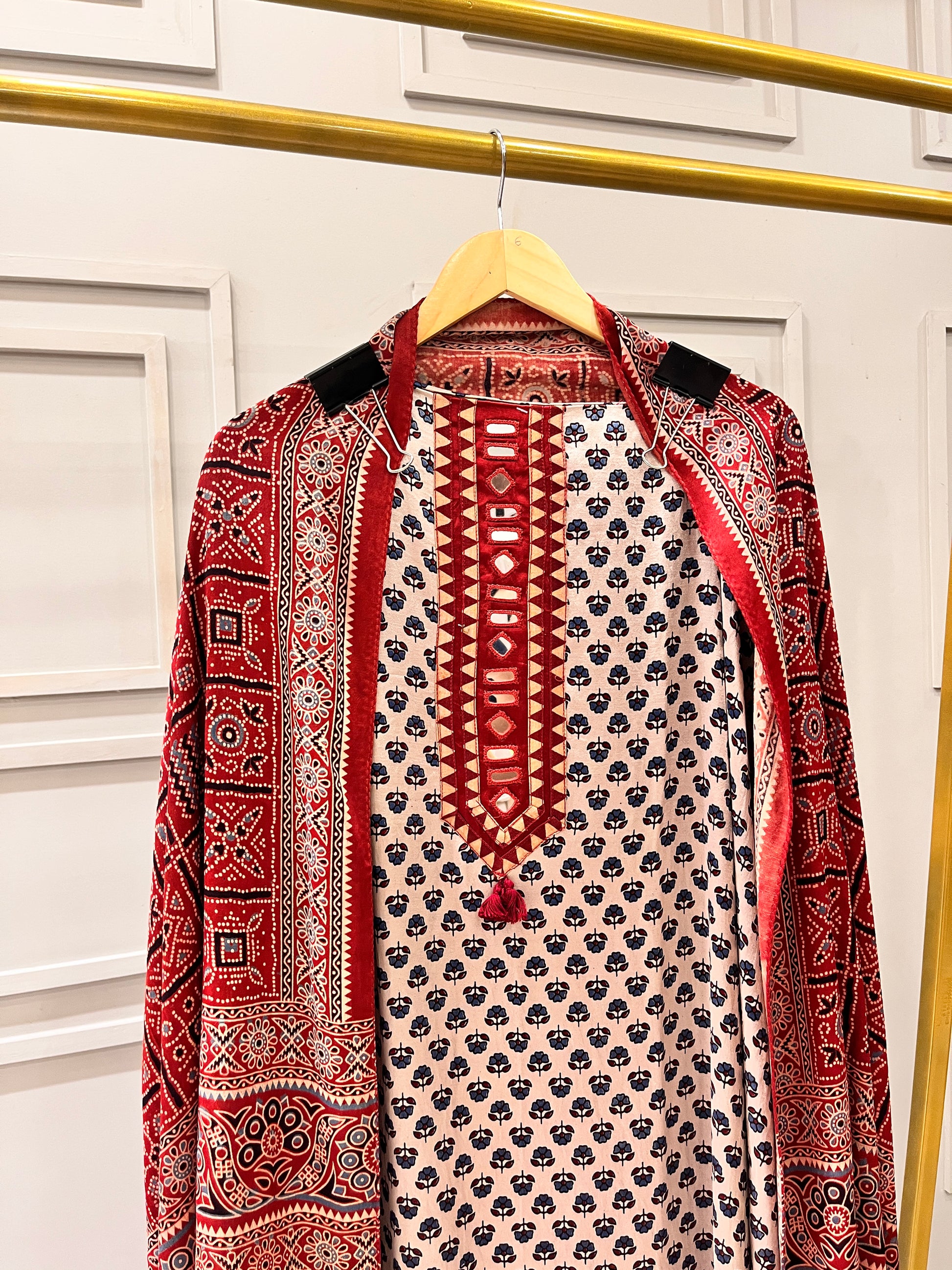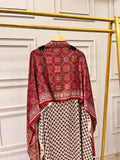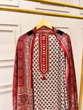 Red Crepe Silk Unstitched Suit with Ajrak Print Dupatta