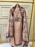 Onion Pink Pure Chanderi Unstitched Suit with Peacock Print