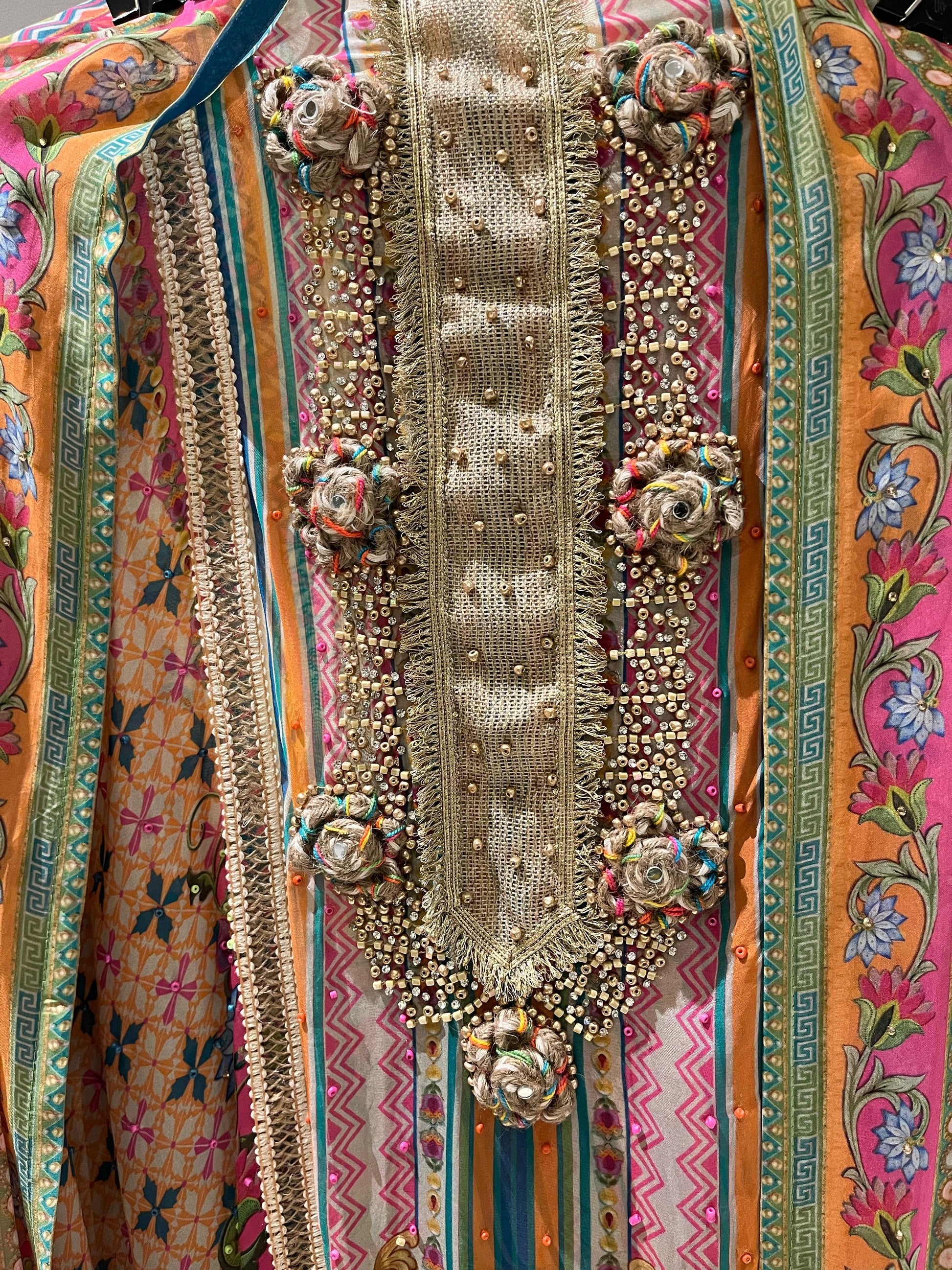 Celebrate vivid elegance with this unstitched suit featuring a captivating multi-coloured digital print, crafted for effortless tailoring to your silhouette. The set includes a printed shirt, matching lower fabric, and a coordinating dupatta — all designed to flow with vibrant pattern and personality. Ideal for festive occasions, cultural events, or any time you want to make a statement with colour and ease.