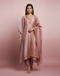 Elevate your festive wardrobe with this Pastel Pink Brocade Tissue Unstitched Suit, designed to radiate feminine elegance and charm. The brocade tissue shirt features refined highlighting details, enhancing its luxurious texture and soft pastel hue.
