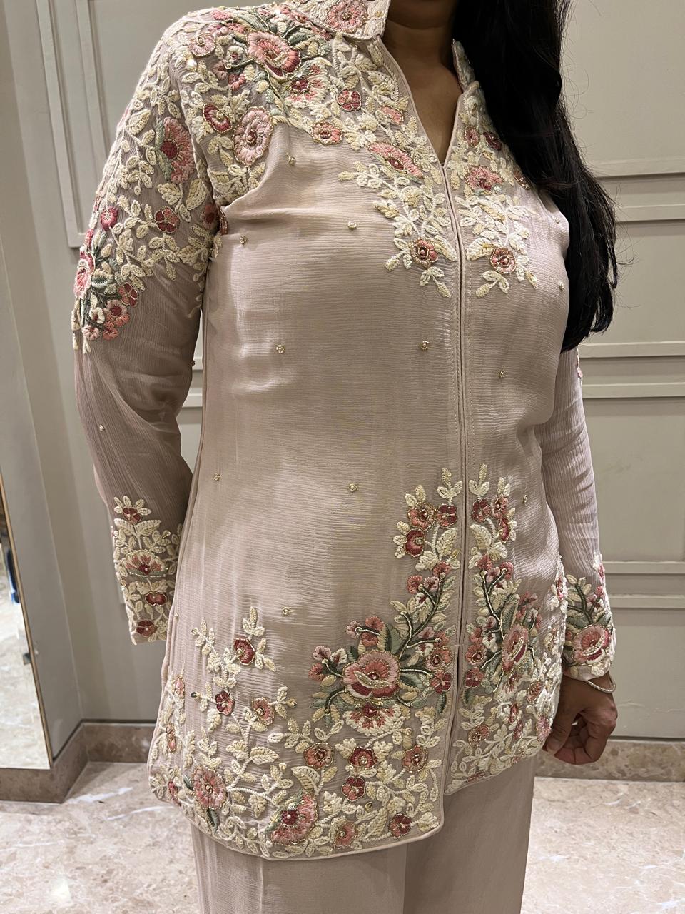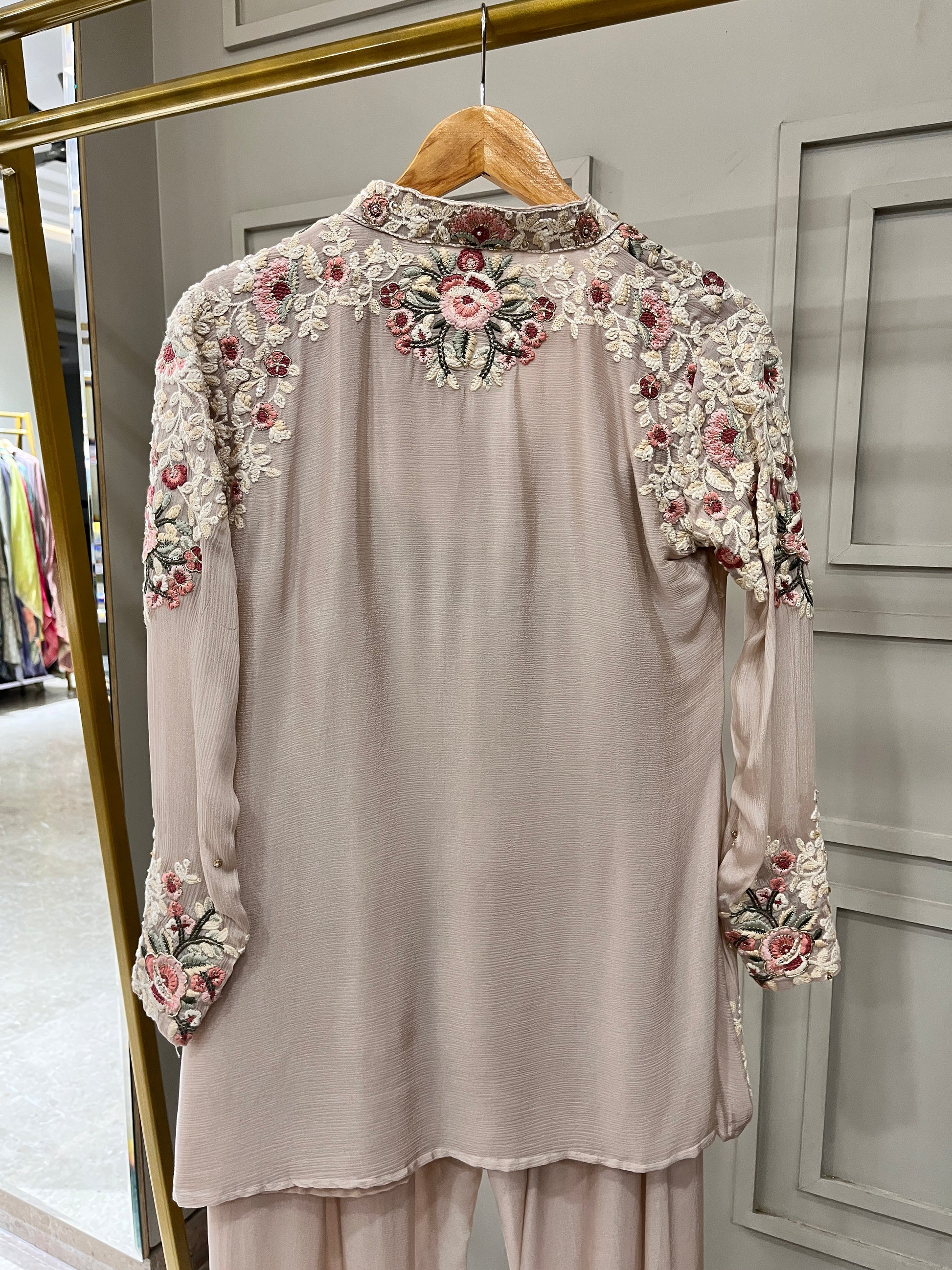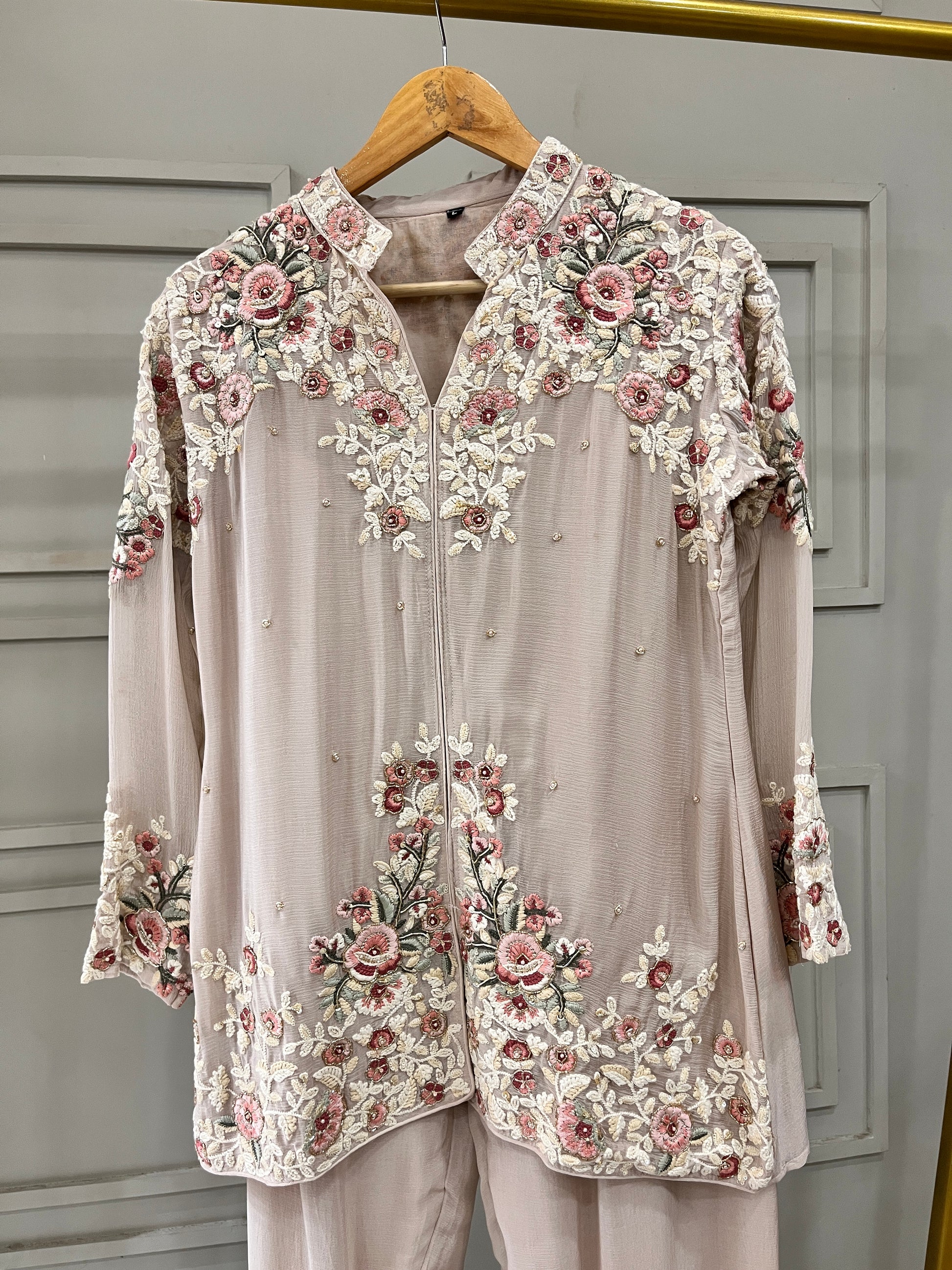 Pastel Pink Hand-Embroidered Formal Co-ord Set – Partywear Elegance