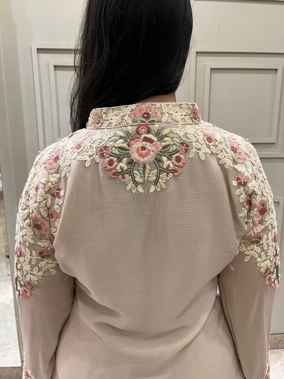 Design: Full hand embroidery across the outfit for a rich, detailed finish