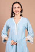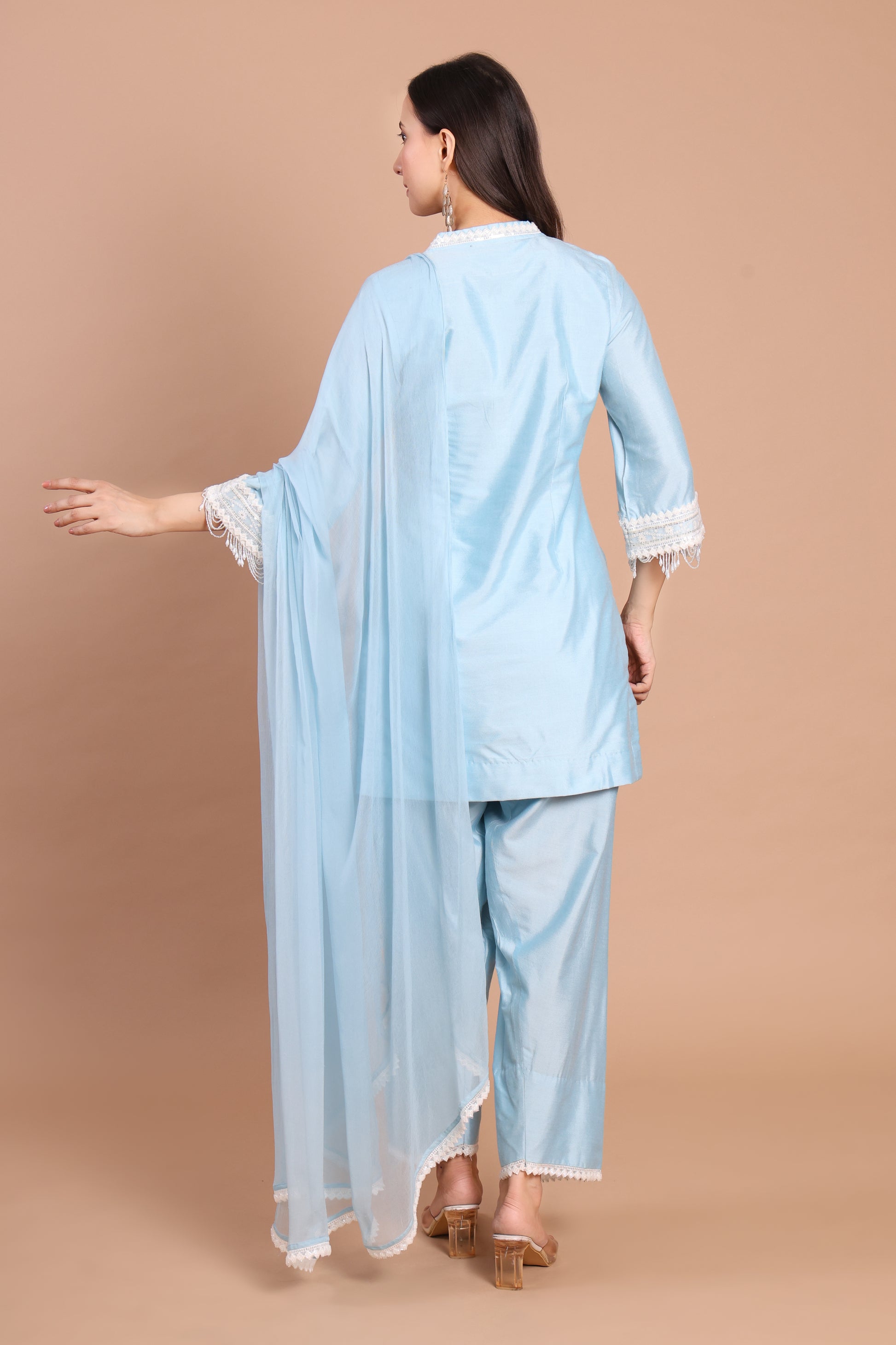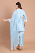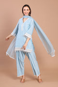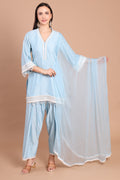 Powder Blue 3-Piece Ready-to-Wear Suit with Farshi Salwar & Chiffon Dupatta