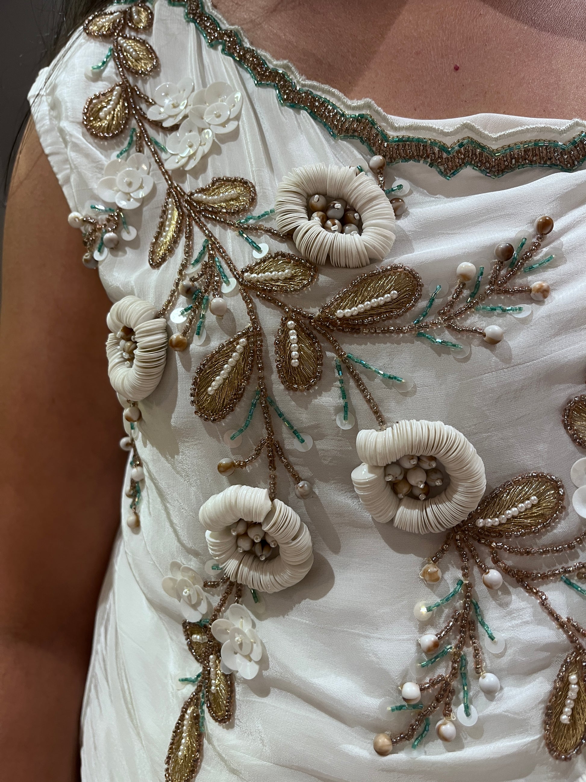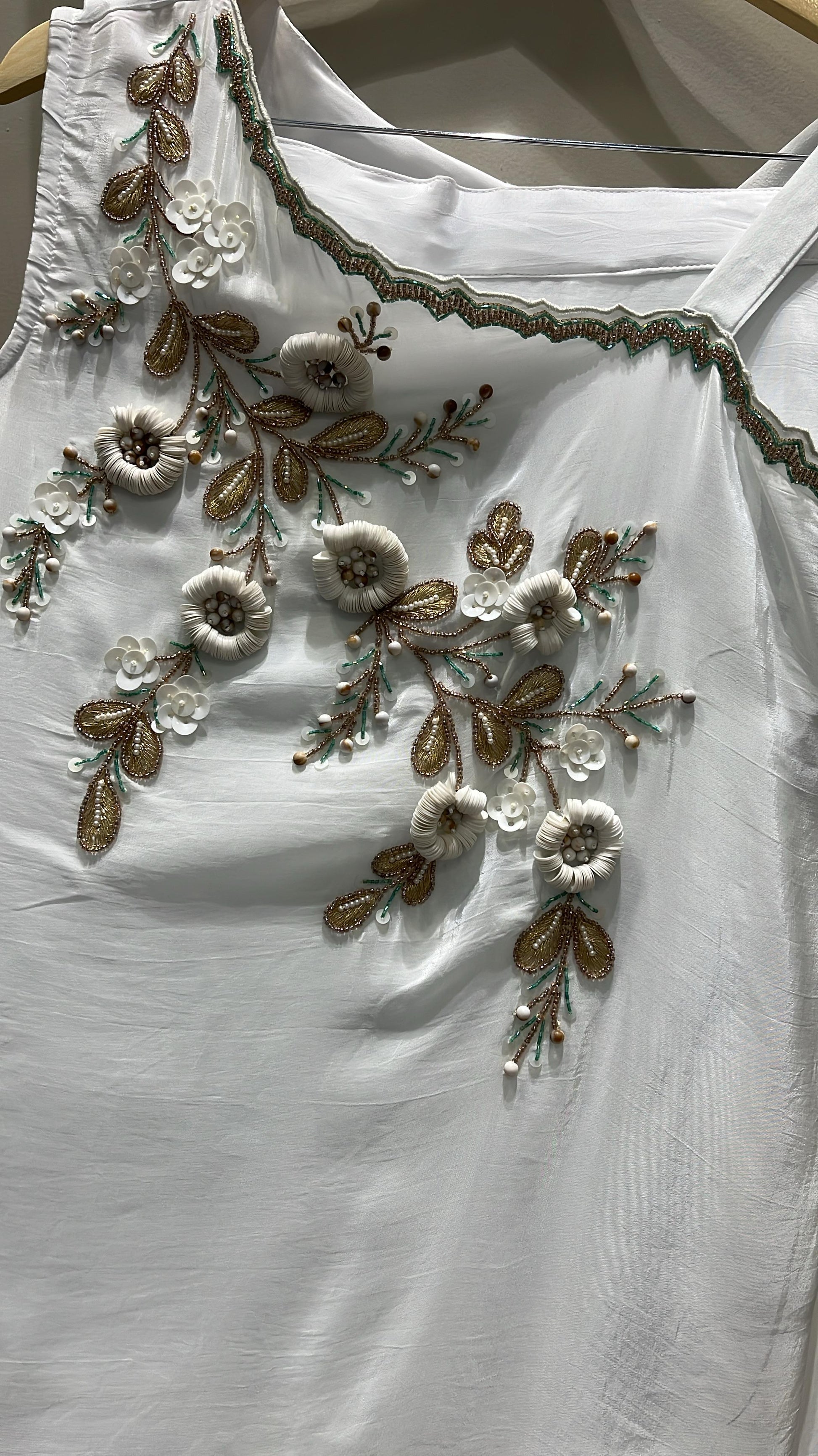 Powder Blue Crepe Shirt with Handwork & Stitched Flare Pants