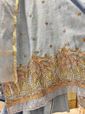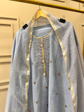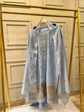 Powder Blue Pure Linen Semi-Stitched Suit with Hand Embroidery