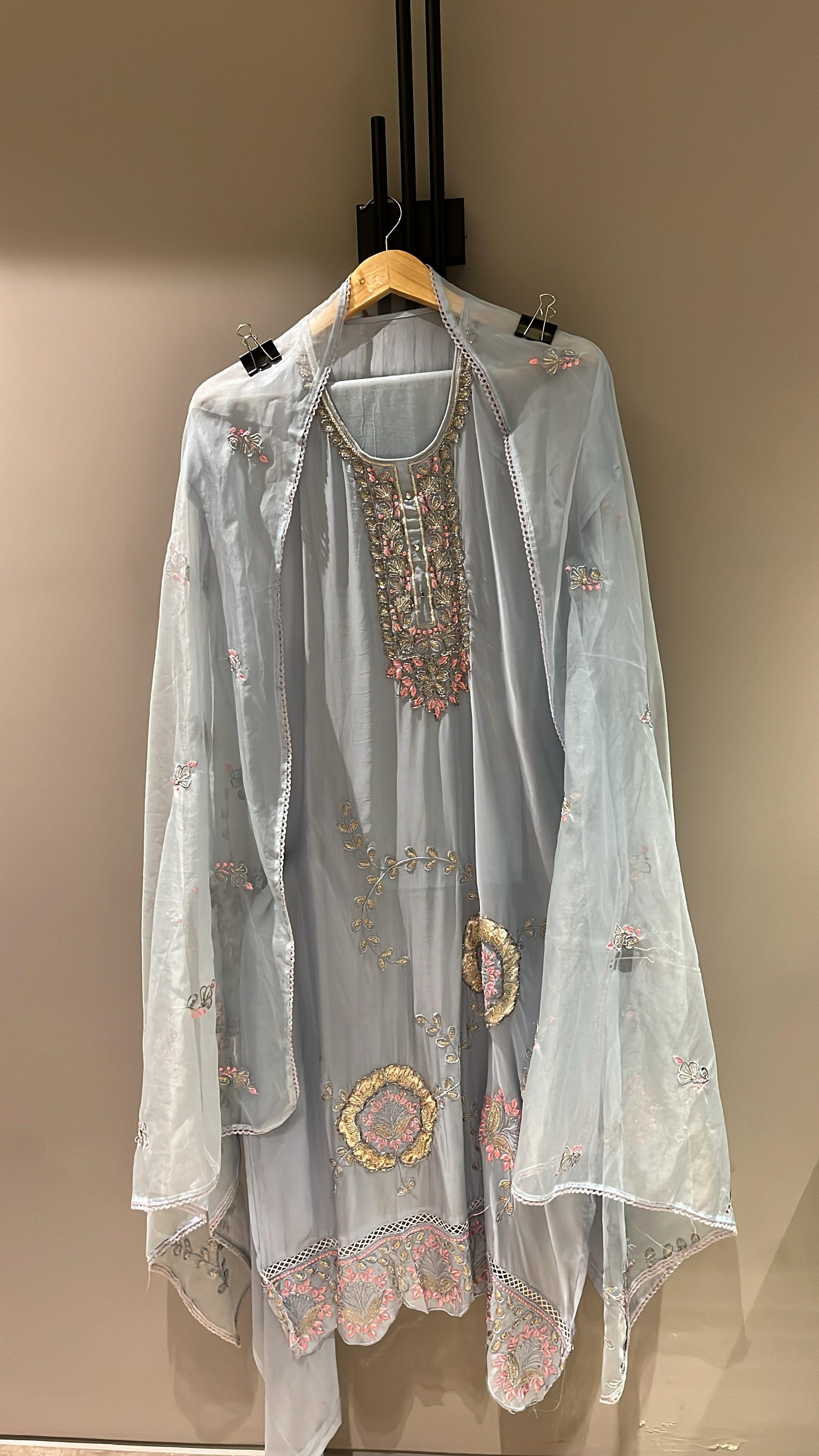 Powder Blue Soft Organza Semi‑Stitched Suit