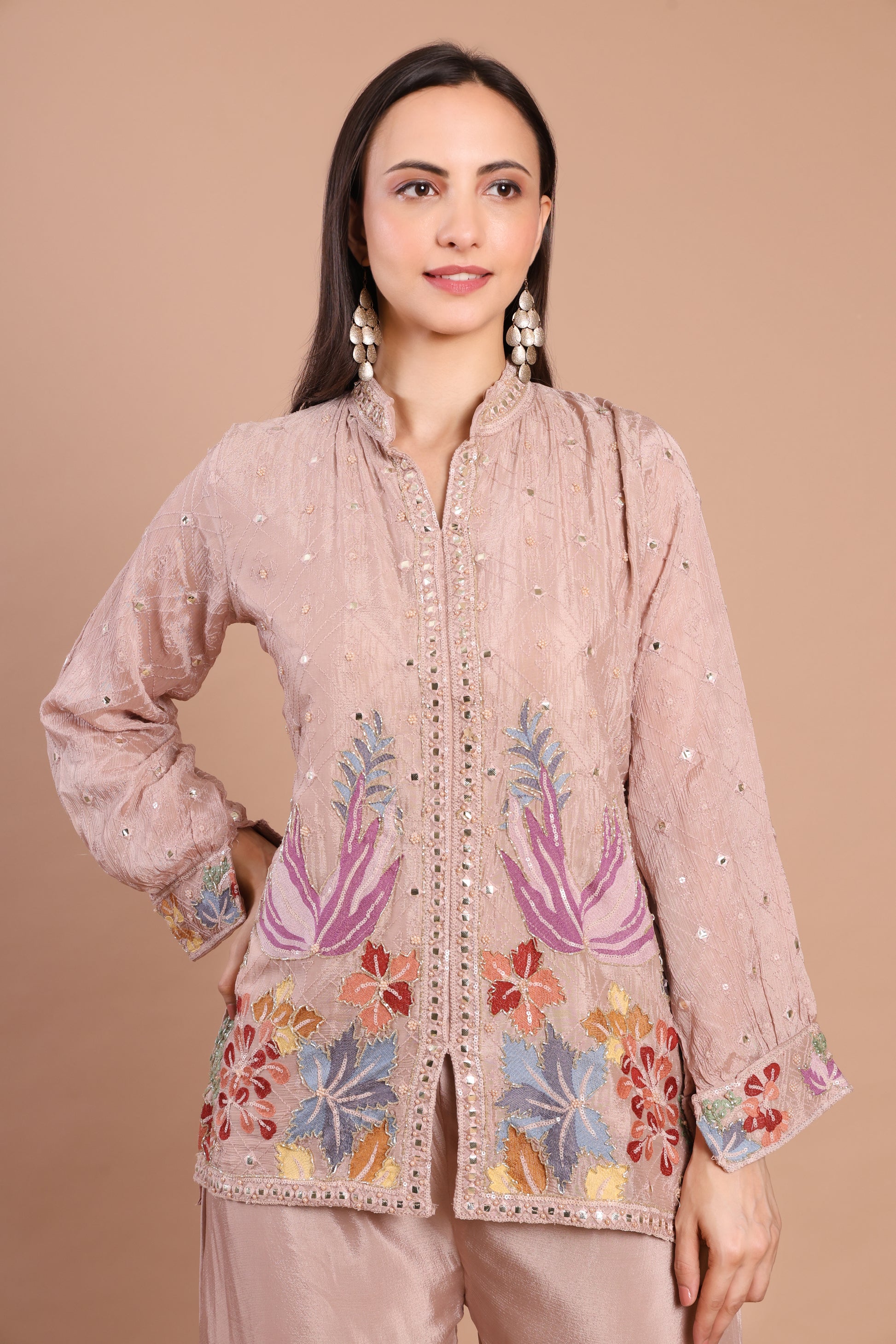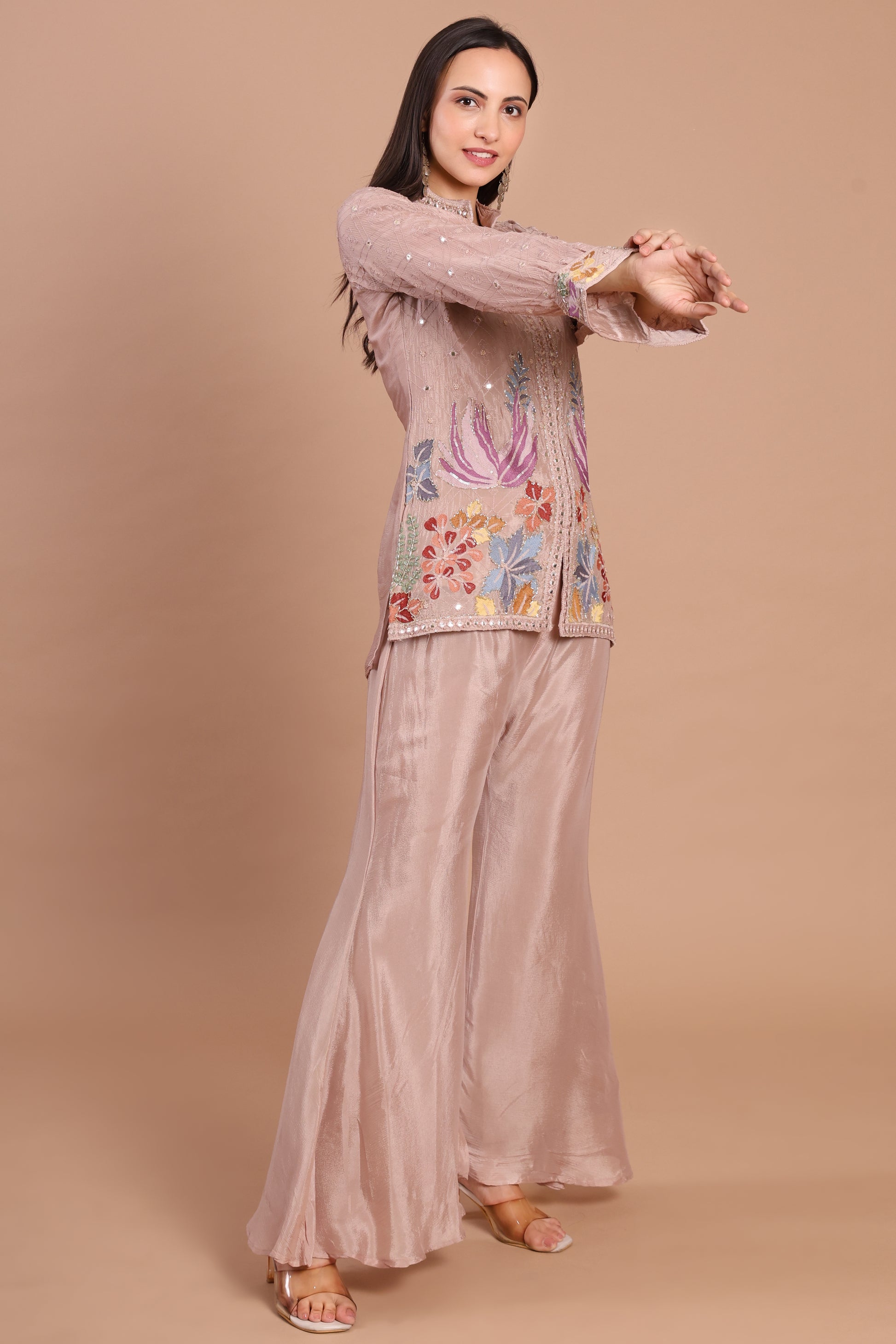 Rose Gold Chinnon Handwork Co-ord Set – Formal Party Wear Elegance