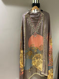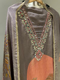 Luxury meets versatility in this unstitched suit crafted from soft shimmer tissue fabric, offering a subtle sheen and graceful drape. The shirt is adorned with hand-applied pearl and mirror work, adding refined sparkle and texture. Complemented by a plain unstitched bottom and a printed elegant dupatta with lace on all sides, the ensemble is designed for effortless tailoring and upscale appeal. Ideal for festive evenings, special gatherings, or when you want to make a statement with understated glam.