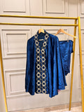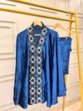 Teal Blue Velvet Coord Set with Handwork Cape