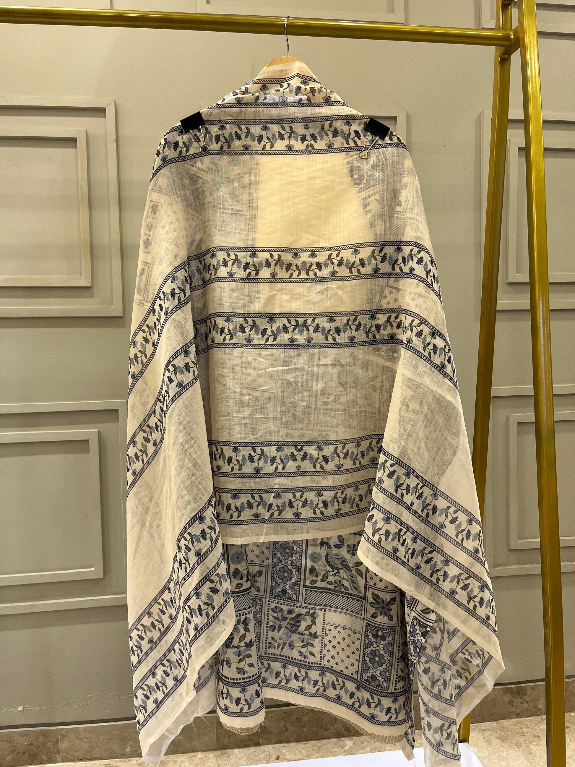 Set Includes: Unstitched shirt + unstitched bottom + printed dupatta